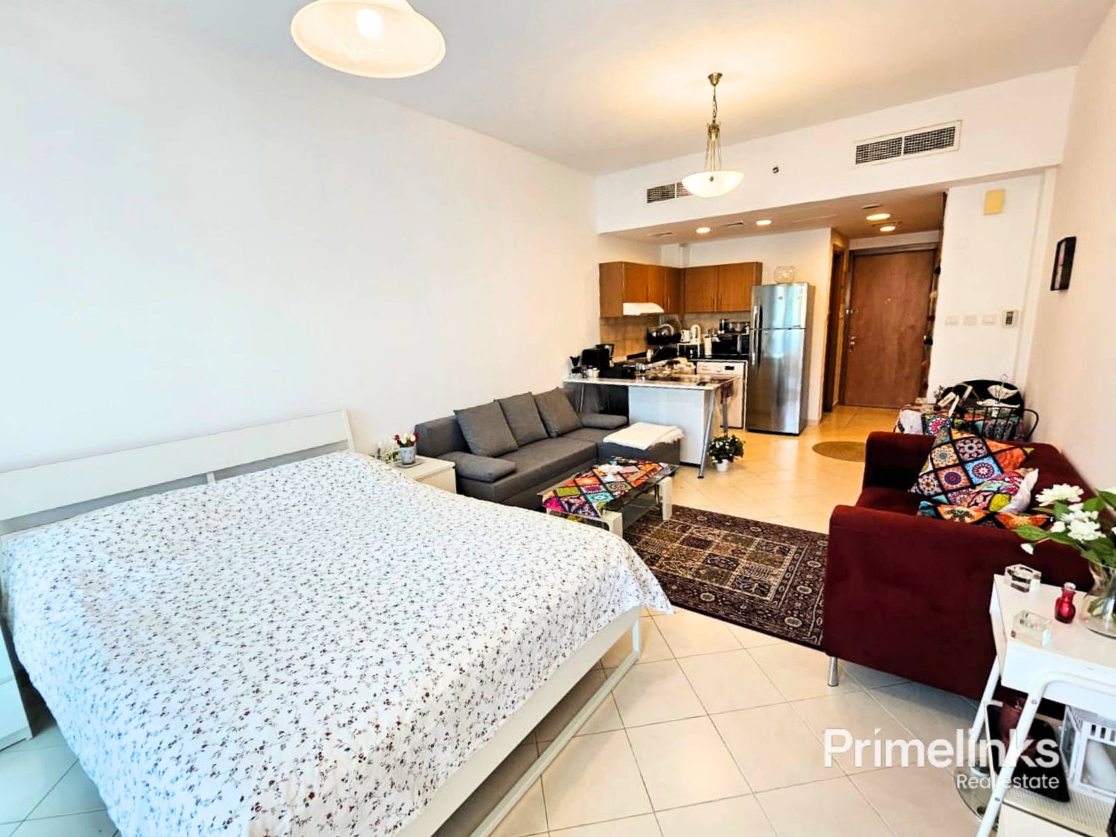 The apartment is designed for comfortable everyday living, featuring a functional fitted kitchen, built-in wardrobes, and central air conditioning. Its efficient layout maximizes usable space, making it ideal for professionals or couples seeking a studio for rent in Dubai Production City.