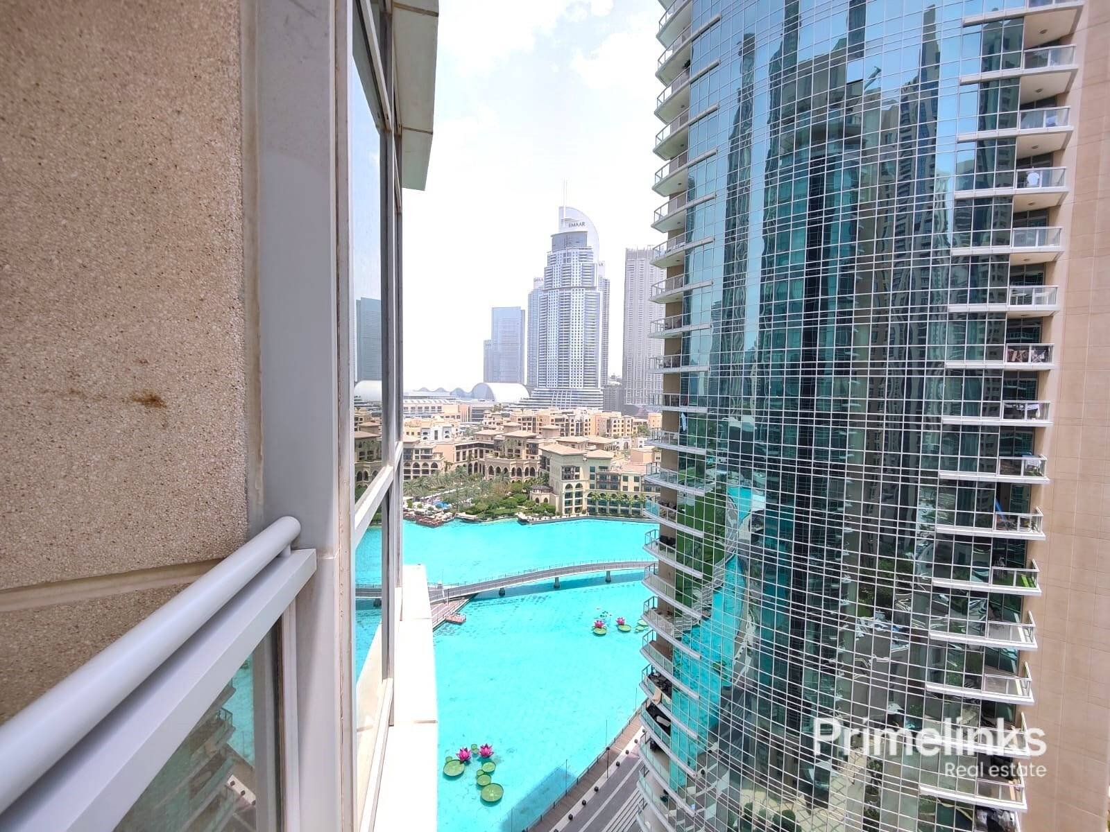 Spanning 986 sq. ft., the apartment features a bright open-plan living and dining area with floor-to-ceiling windows, offering excellent natural light and a private balcony with partial views of the Dubai Fountain. The unit is offered unfurnished and will be vacant from 1st June.