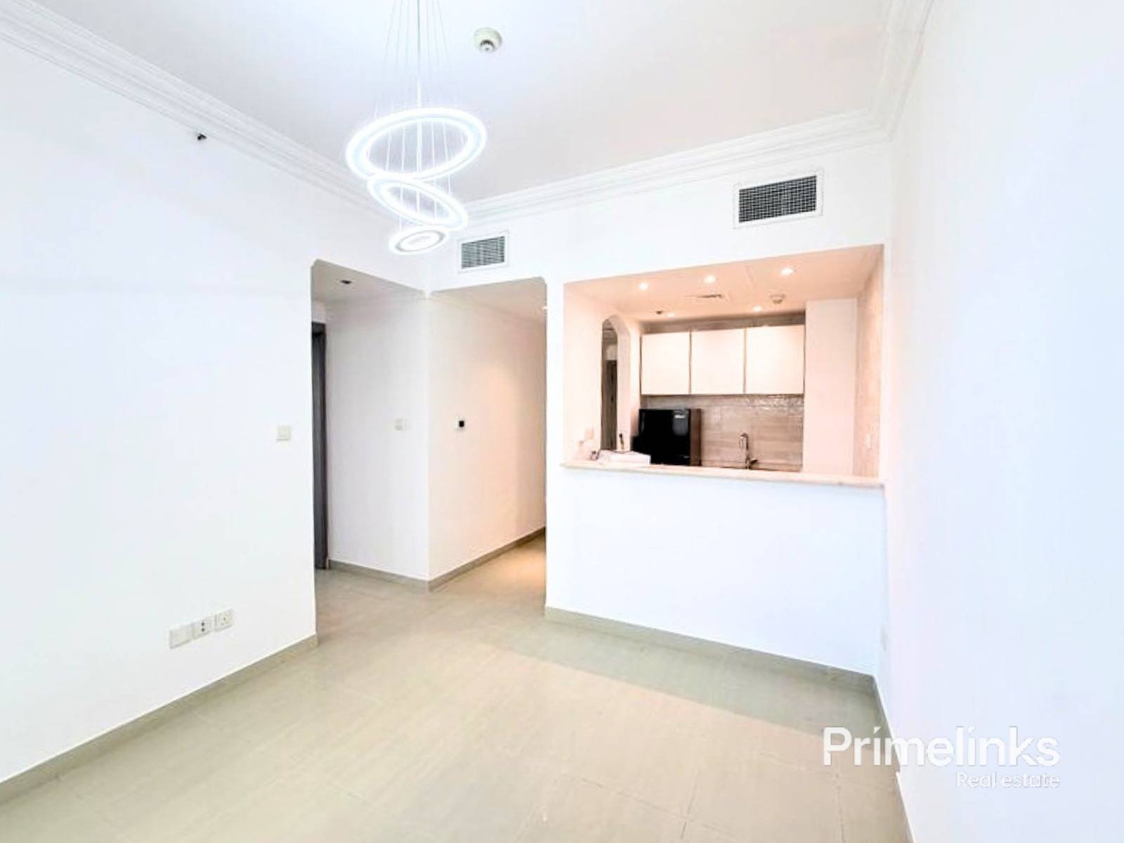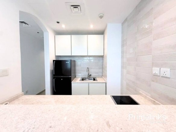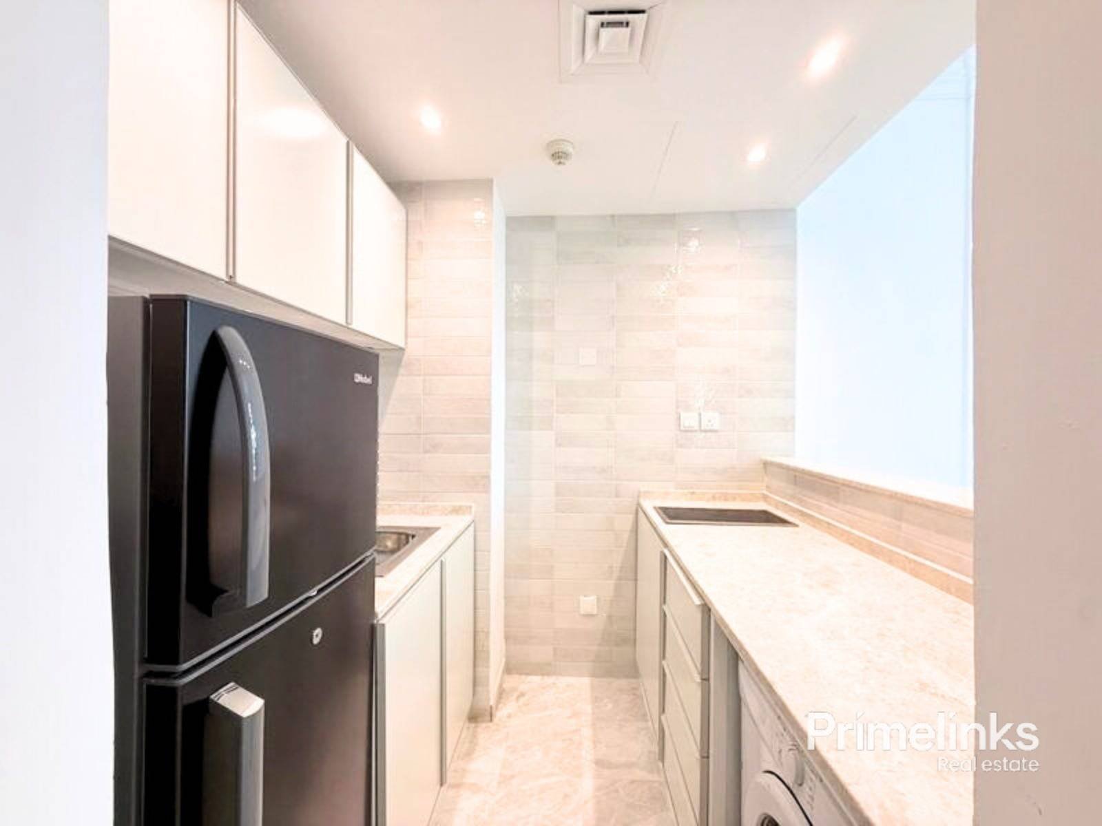 The sleek open kitchen comes fitted with modern appliances and contemporary cabinetry, while the spacious bedroom includes built-in wardrobes and elegant finishes, creating a comfortable and modern living space.