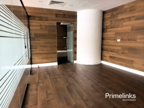 As showcased in the attached photos, the office is expertly configured into three private rooms, each defined by high-quality glass partitions with frosted detailing. The design maximizes natural light while ensuring discretion and professionalism. Warm wood-finish flooring, clean architectural lines, and a modern ceiling with integrated lighting and AC vents elevate the space with a sophisticated, executive feel.