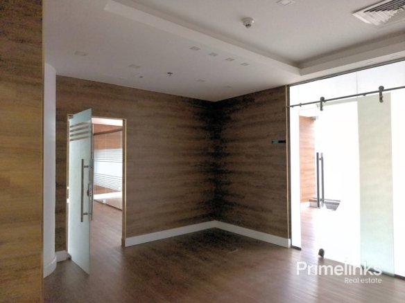 As showcased in the attached photos, the office is expertly configured into three private rooms, each defined by high-quality glass partitions with frosted detailing. The design maximizes natural light while ensuring discretion and professionalism. Warm wood-finish flooring, clean architectural lines, and a modern ceiling with integrated lighting and AC vents elevate the space with a sophisticated, executive feel.