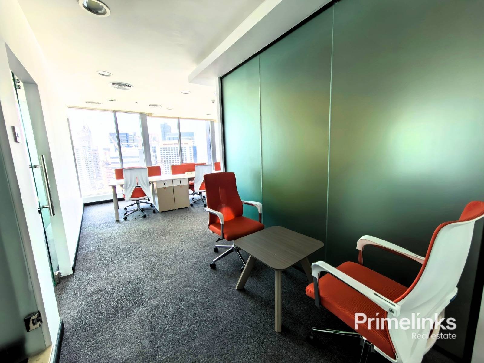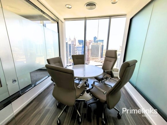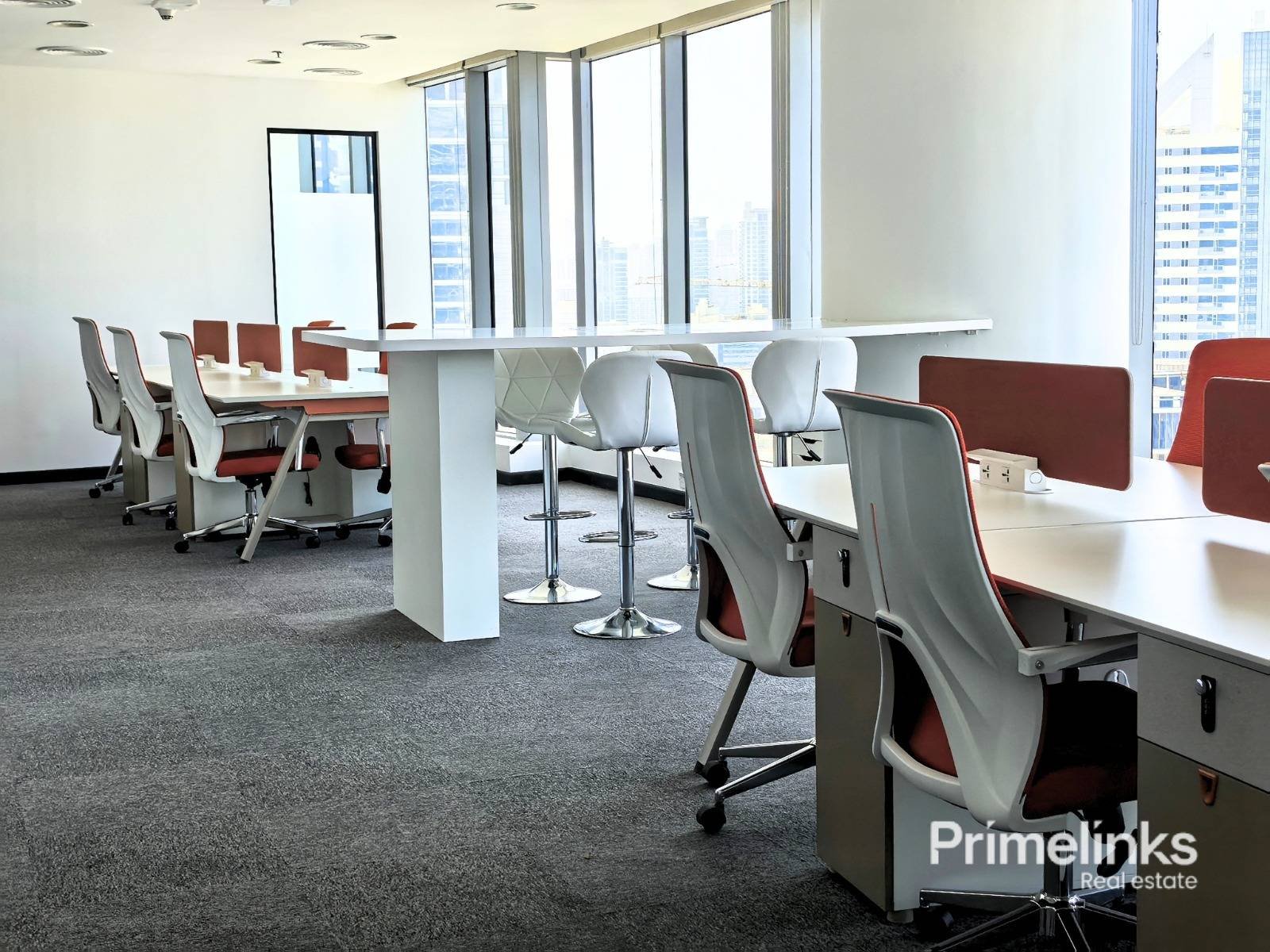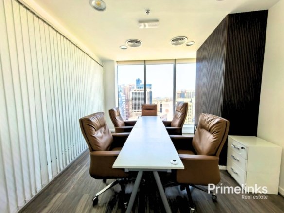 As showcased, the office features a spacious open-plan layout with floor-to-ceiling windows, flooding the space with natural light and offering impressive city views. The unit is complemented by four private meeting rooms, ideal for team discussions and client meetings, along with a dedicated pantry for everyday convenience.